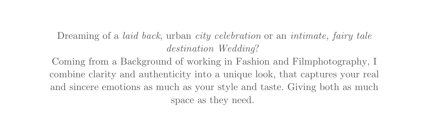 Eure Persönlichkeit und die eurer Gäste möchte ich einfangen.